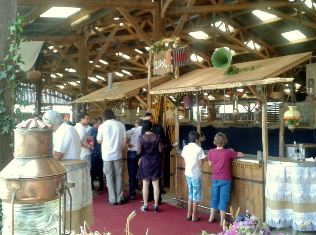 ∗ D’un bar rustique et fantaisiste, réalisé en matières brutes et nobles (charpente en bois de chêne, ferronneries anciennes, comptoirs en zinc …), éclairé, décoré et accessoirisé selon les envies ;